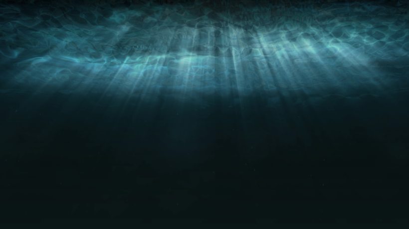 She’s standing—or maybe floating?—on what she assumes is the ocean floor, though she has no way of being sure. It’s dark down here. Not completely black, but dim, illuminated only by the faintest blue glow filtering through the miles of water above her. It makes the sand look like it’s glowing just a little. Nice touch.